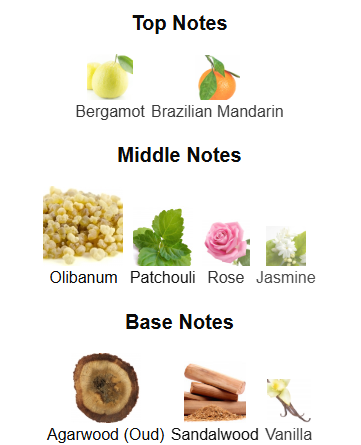 "This is a colourful, expressive fragrance. The opening notes define a punch of balsamic, sweet and fresh characters filled with Bergamot and Mandarin. The heart is built around the rosy, analgesic powdery notes of Jasmine and shades of Patchouli and Olibanum. The base culminates into strong notes of Sandalwood, shades of Tobacco, powdery Vanilla and Agarwood." - a note from Mr. Farhan